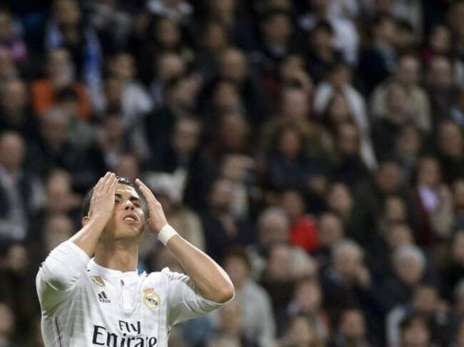 TOPSHOTS Real Madrid's Portuguese forward Cristiano Ronaldo reacts during the Spanish league football match Real Madrid CF vs Villarreal CF at the Santiago Bernabeu stadium in Madrid on March 1, 2015. The game ended with a draw 1-1. AFP PHOTO/ DANI POZO / DANI POZO