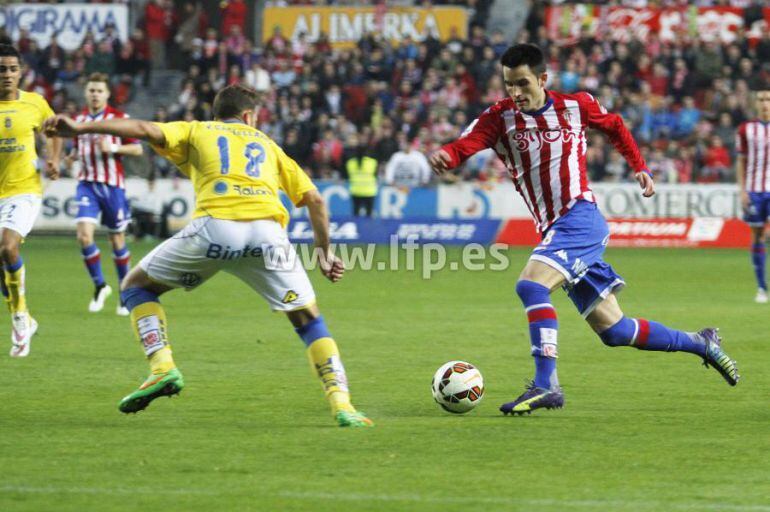 La UD Las Palmas visitaba el Molinón con las bajas de Culio y Viera y sin el liderato en solitario después de la victoria del Betis ante el Valladolid. Paco Herrera apostó por Vicente y Momo para en el once titular, con este último más metido en el centro del ataque.