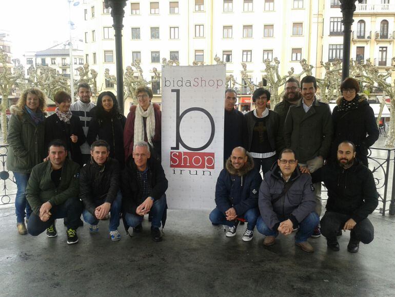 Una veintena de comerciantes y hosteleros de Irún han presentado en la plaza del Ensanche la nueva asociación de comerciantes y hosteleros de la ciudad “bidaShop”. En palabras de su presidente, Yon Gallardo, se trata de “un nuevo lugar de encuentro e impulso de la actividad comercial de la ciudad que queremos que se convierta en el motor de las actividades que dinamicen el fuerte potencial comercial de Irún”.