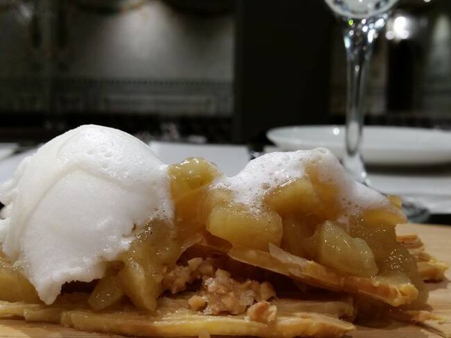 Hojaldre de manzana, helado de limón y espuma de cerveza: