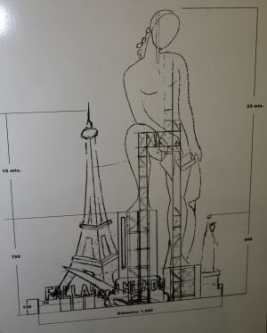 Una figura gigante de 23 metros hecha de vareta y representando a la figura del gremio de artistas falleros y reproducciones en la base de algunas de las fallas que se han plantado en la plaza del Ayuntamiento. Esta es la propuesta que el artista Manolo García para la falla municipal de 2016. Se ha dado a conocer este miércoles y es la única que se ha presentado al concurso convocado.