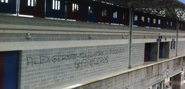Ipurua ha amanecido hoy con una desagradable escena. Han aparecido pintadas en el exterior del campo de fútbol en contra el Consejo de Administración del Eibar. Las pintadas han sido hechas en dos noches consecutivas y junto al nombre del Presidente del Club, de varios Consejeros y de empleados de la entidad