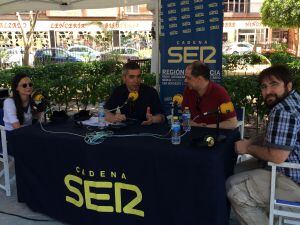 César Oliva Bernal, director del Aula de Teatro de la Universidad de Murcia, acompañado por el actor José Ramón de Moya, y por la actriz, Ana Belén García, ha pasado por los micrófonos de la SER para participar en la edición especial del programa Hoy por hoy Murcia, realizado desde el Jardín de Floridablanca con motivo del 20 aniversario de la Asociación de Comerciantes del Barrio del Carmen.