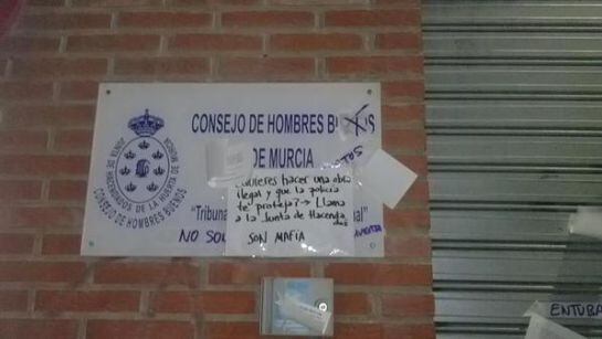 Protesta en la puerta de la Junta de Hacendados y del Consejo de Hombres buenos de Murcia
