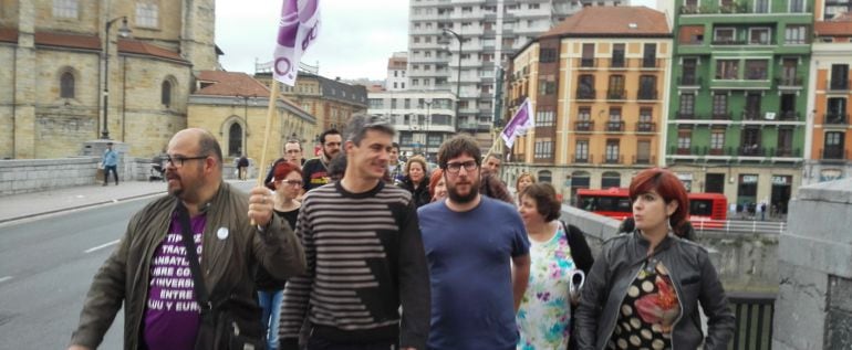 Los candidatos de Podemos a las tres diputaciones han recibido este jueves en Bilbao la visita del europarlamentario Miguel Urbán, el primer apoyo de un líder del partido estatal en lo que llevamos de campaña electoral.