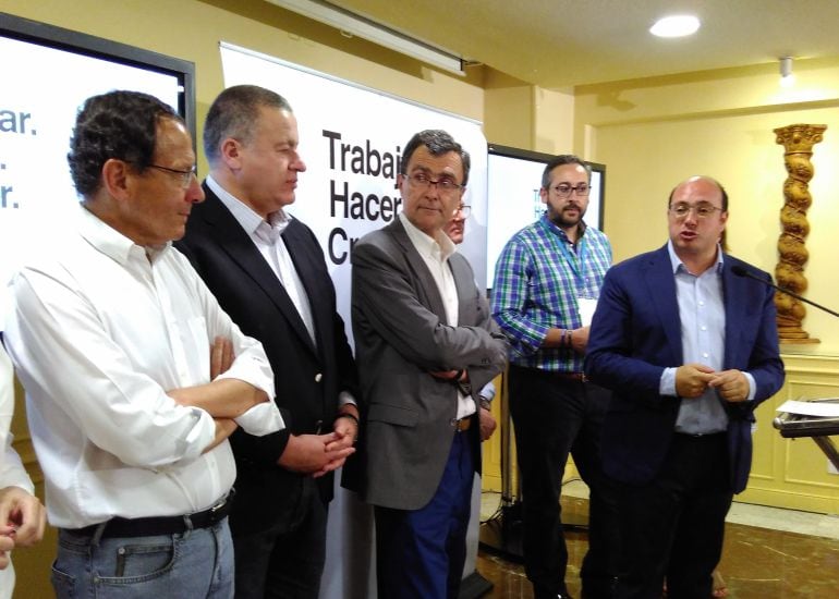 El presidente del PP , Ramón Luis Valcarcel, felicitó a Pedro Antonio por su campaña y le dijo que han sido el mejor resultado de todas las comunidades autónomas lo que le permitirá gobernar.