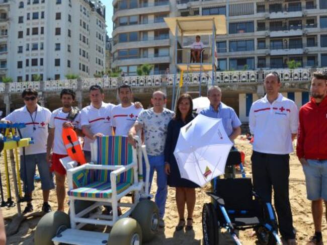 Cruz Roja Gipuzkoa ha dado a conocer los diferentes servicios que van a ofrecer este verano. Su principal novedad, es la silla todoterreno. Estará destinada a personas con problemas de movilidad o con algún tipo de discapacidad. Les permitirá pasear por la arena, superar cualquier obstáculo y acercarse a la orilla. Unas sillas que de momento sólo estarán disponibles en las playas de Zarautz y de la Concha.