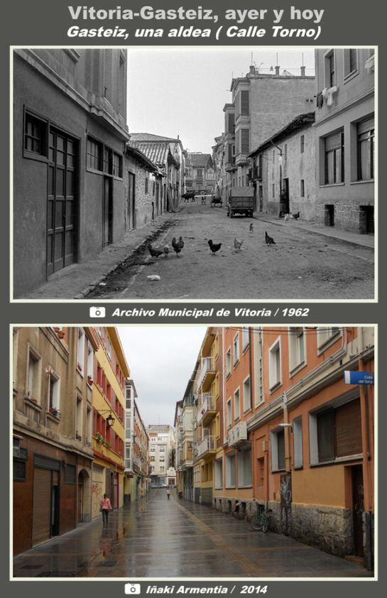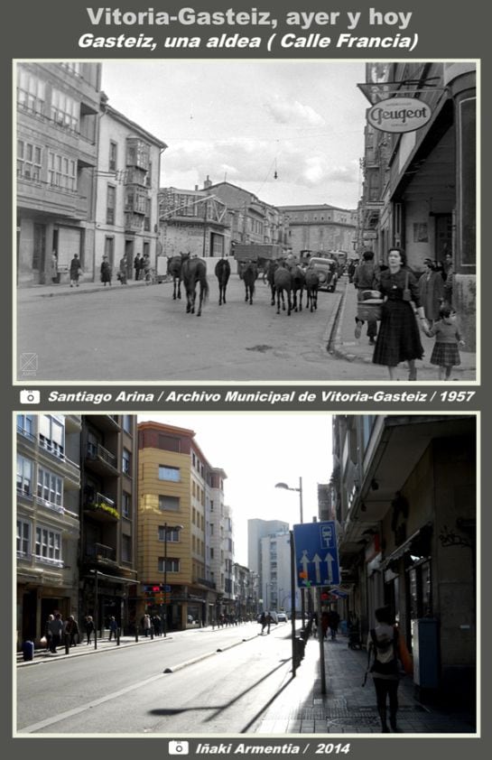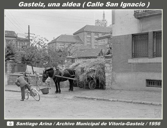 Las fotografías del Archivo Municipal de Vitoria-Gasteiz, obtenidas entre 1956 y 1962, nos presentan un aspecto de la ciudad pueblerino, parecido al de una aldea rural. En esos años, en anteriores y en algunos posteriores era normal el tránsito del ganado por algunas calles y el transporte de mercancías se realizaba con relativa normalidad en carros tirados por caballos o mulas.