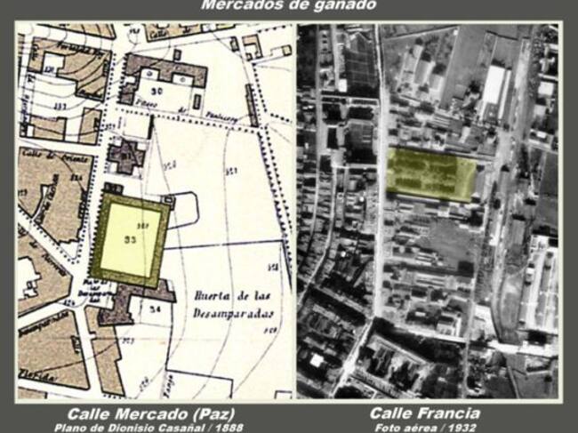 Nos hemos permitido de forma virtual, colocar unas cuantas vacas en la foto actual de la calle. Hoy sería impensable el trafico de animales por las vías urbanas. Algo que era normal entonces, ahora es imposible.