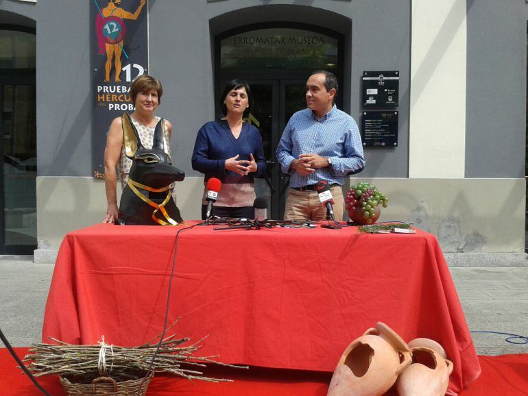 El delegado de Promoción Económica y Turismo en funciones, Miguel Ángel Páez, ha presentado el Festival Romano Dies Oiassonis, que se celebra en Irun del 17 al 19 de julio. También han estado presentes Cristina Aguirre y Mertxe Urteaga, en nombre del Museo Oiasso.