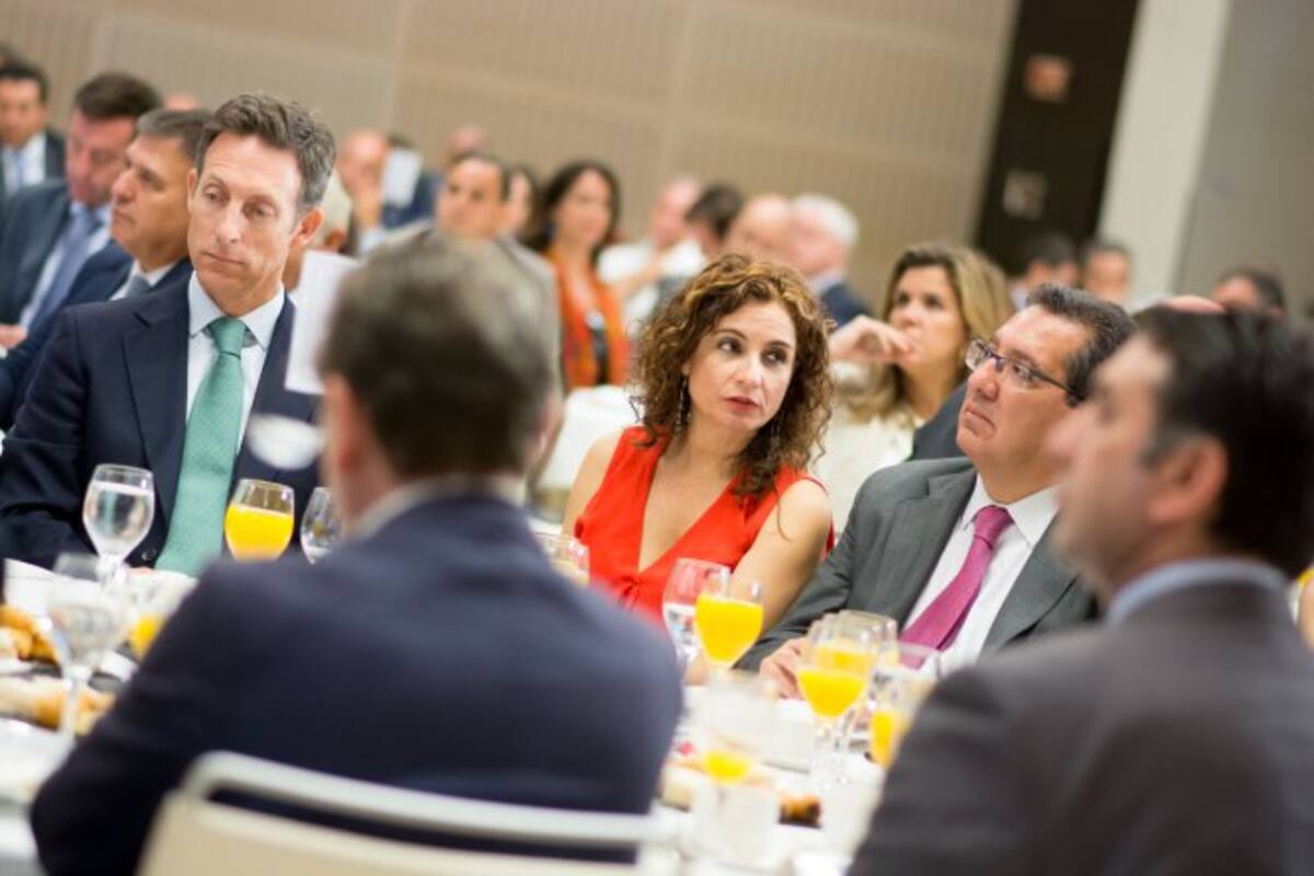 La consejera de Hacienda, María Jesús Montero, a su llegada al desayuno en el Hotel NH Collection