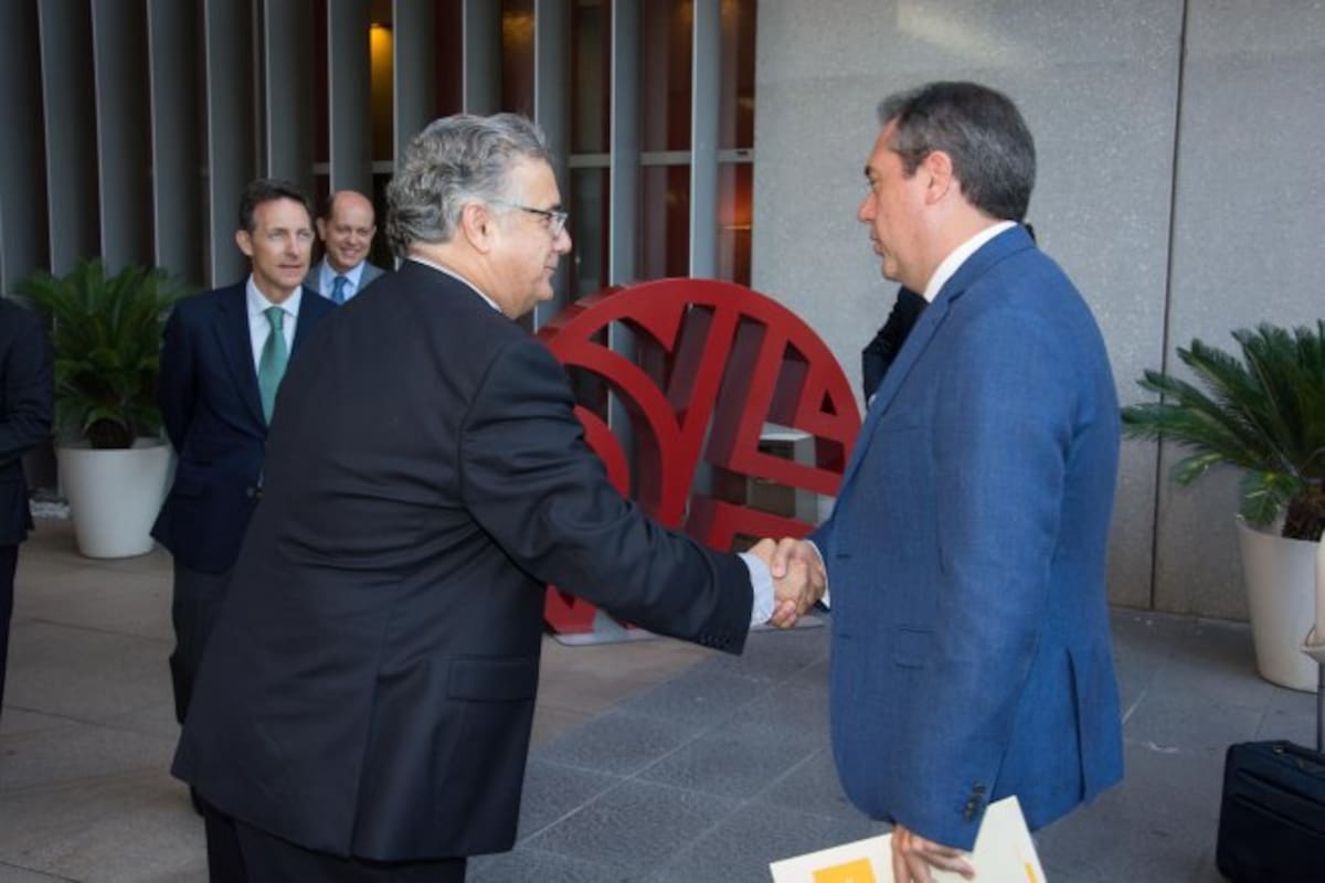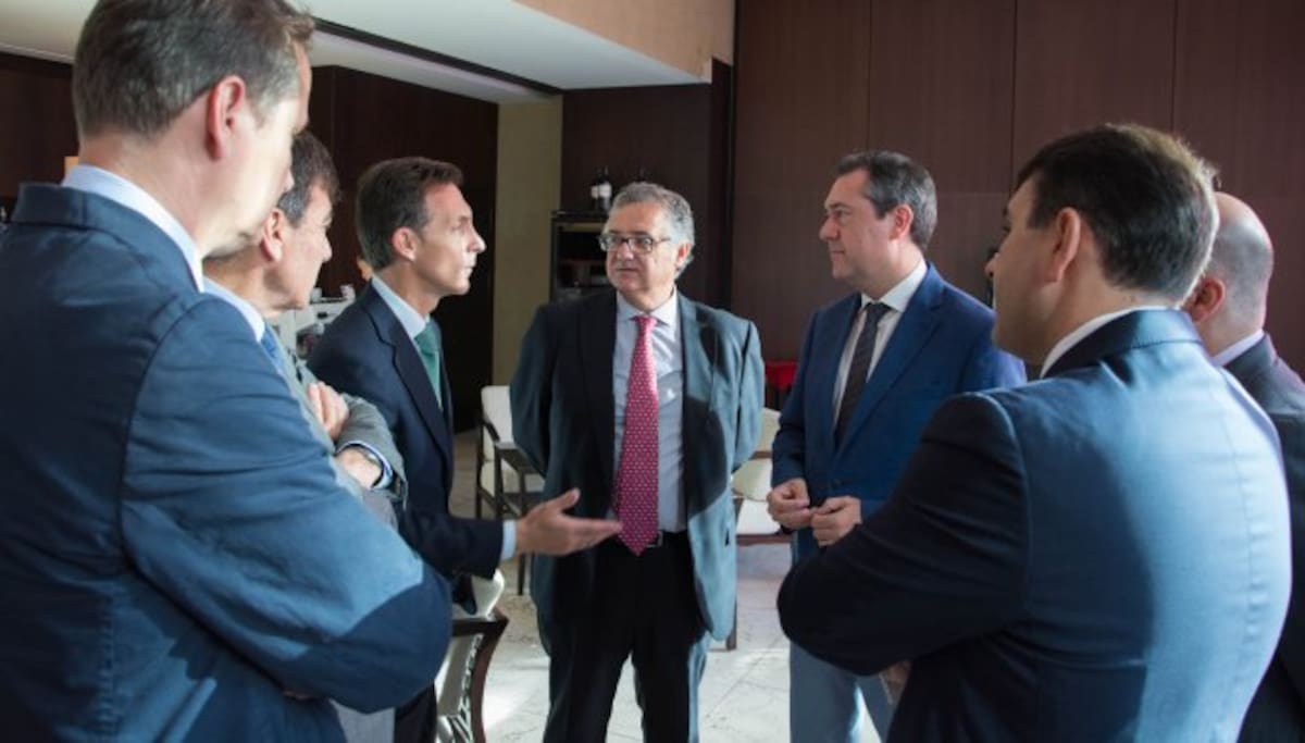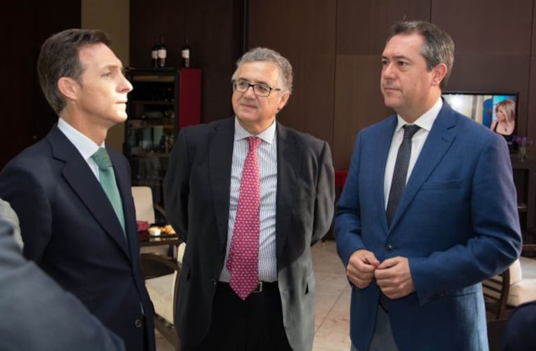 El presidente de la Diputación de Sevilla, Fernando Rodríguez Villalobos, junto al consejero de Justicia, Emilio de Llera y el presidente de los Empresarios de Sevilla, Miguel Rus