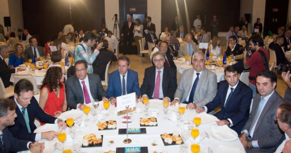 Damián Álvarez, Presidente de la Audiencia de Sevilla; Silvia de Carrión, procuradora; Rosa Robles, Juan Carlos Cabrera, Delegado de Fiestas Mayores del Ayuntamiento de Sevilla; Adela Castaño, Salomón Hachuel, director de 'Hoy por Hoy Sevilla'; Carmen González, de Mercadona; Javier Márquez, Jefe de Informativos de Radio Sevilla y Belén Martínez, de la Cámara de Comercio de Sevilla