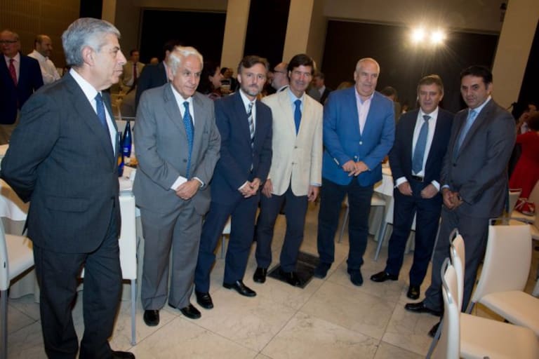 De izquierda a derecha: Damián Álvarez, presidente de la Audiencia Provincial de Sevilla; Antonio Pascual, del Consejo Asesor de Endesa en Andalucía y Extremadura; José Fiscal, consejero de Medio Ambiente; Miguel Rus, presidente de la Confederación de Empresarios de Sevilla; Francisco Carbonero, secretario general de CCOO-A; y Franci