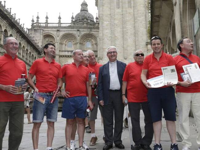 Un hombre que forma parte de los ocho integrantes de un grupo que recorrió en bicicleta 200 kilómetros desde Campo de Criptana (Ciudad Real) hasta la capital gallega se ha convertido hoy en el peregrino número 100.000 de este año.