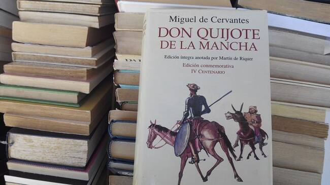 Dos tomos que suman más de mil páginas, presentes en numerosas bibliotecas y librerias. Se trata de la obra maestra de Cervantes por la cual se le recuerda, aunque él pensó que su mayor hazaña fue la de participar en la batalla de Lepanto. Sin embargo, una gran parte de la población dice no haber leído el "Don Quijote" al completo.