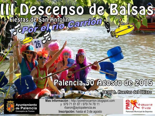 El Ayuntamiento de Palencia convoca la tercera edición del Descenso de Balsas por el Río Carrión para el próximo domingo 30 de agosto, teniendo prevista su salida a partir de las 18:00 horas desde el embarcadero de las Huertas del Obispo y estableciéndose la meta, al igual que en las dos ediciones anteriores y después de recorrer alrededor de 750 metros, en el Puente Mayor.