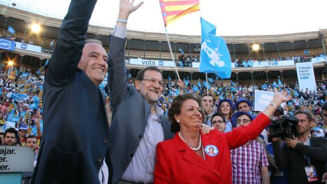 Rita Barberá con Alberto Fabra y Mariano Rajoy. / Soler, José (ACN)