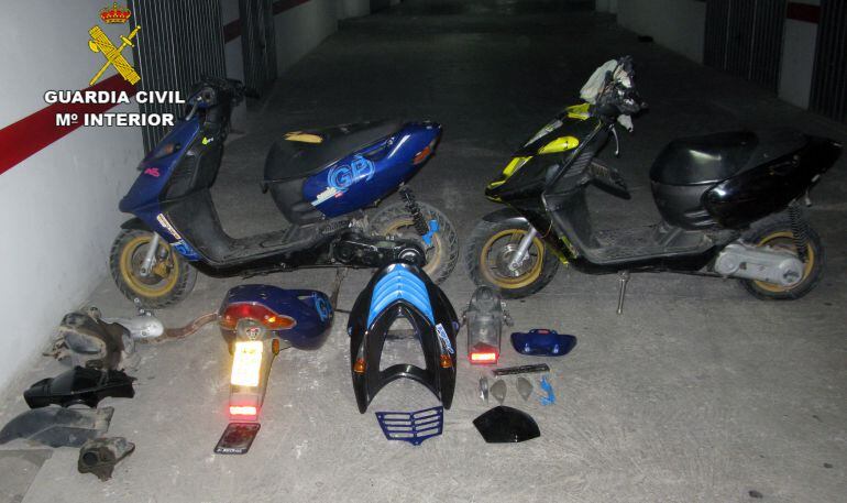 En los registros efectuados en los dos garajes, los guardias civiles se incautaron de una furgoneta y cuatro ciclomotores sustraídos, además de restos de piezas de otros dos ciclomotores. Todo ello, tras ser puesto a disposición judicial, ha sido devuelto a sus legítimos propietarios.