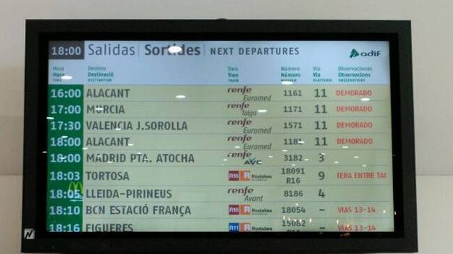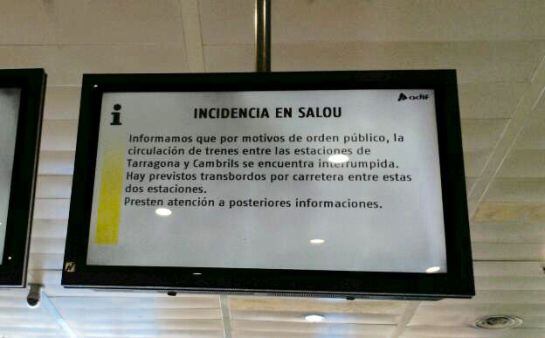 La protesta de Salou provoca retards a la ruta ferroviària cap a València. Malgrat que els trens no pateixen aquests retards a la seva sortida, les demores es produeixen al seu pas per la localitat tarragonina de Salou.