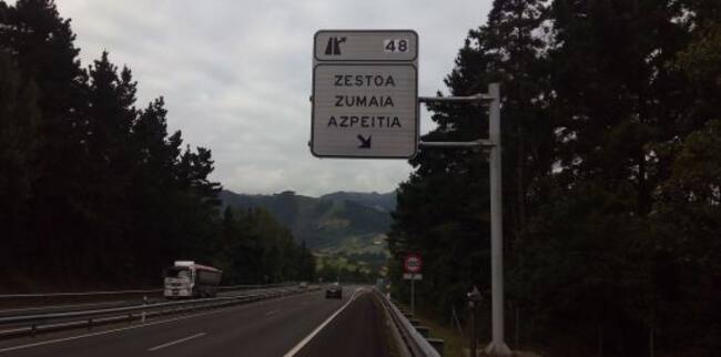 El ejecutivo foral de Bildu instaló estas señales a finales de noviembre en autopistas y autovías guipuzcoanas, como la N-I, A-15, AP-8 y AP-1 tras un gasto de más de 91.500 euros en nueve carteles