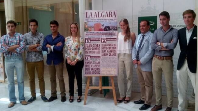 El alcalde de La Algaba, Diego Manuel Agüera, posa junto al algunos de los protagonista del ciclo de novilladas de promoción / Cadena SER
