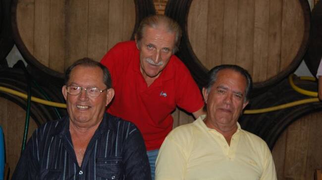 De izquierda a derecha, Manolo Cabello, Baldomero de la Bodega de La Pañoleta y el fallecido Faustino Cabello, un histórico junto a su hermano de Los Romeros de La Puebla / Cadena