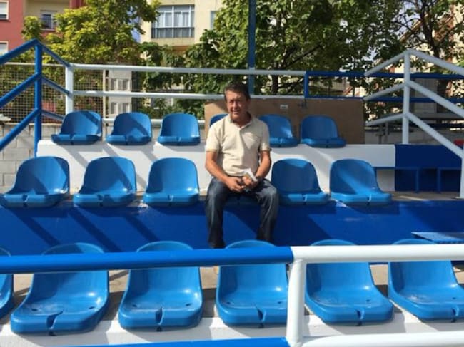 El presidente Jesús Navarro en el palco del campo de El Carmen donde juega sus partidos como local el CD Ebro / CD EBRO