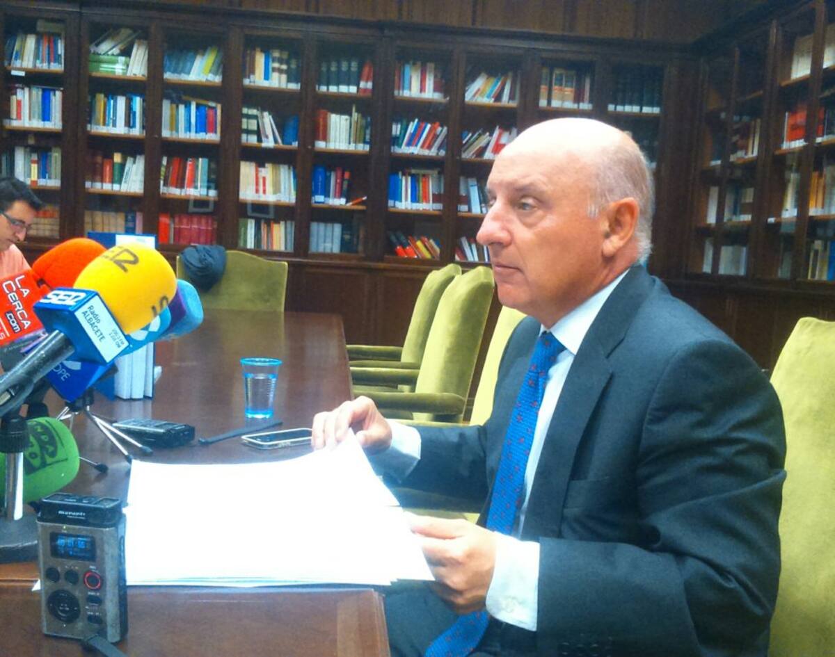 El presidente del Tribunal Superior de Justicia de Castilla - La Mancha Vicente Rouco en la rueda de prensa de la memoria judicial del pasado 2014