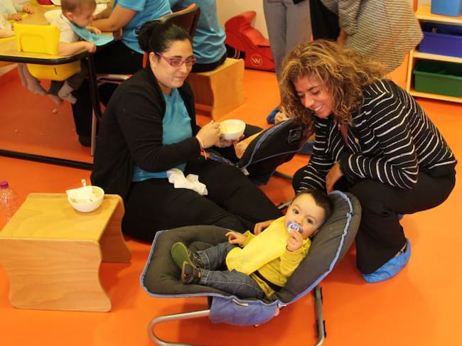 La cònsol major de Sant Julià, Montserrat Gil, saluda els infants de la nova escola bressol L'Espill, inaugurada ahir. / M.C. (ANA)