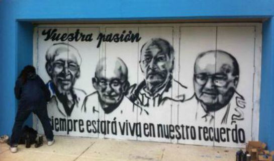 Los motivos son dos: por un lado el recuerdo para los alavesistas fallecidos (anónimos y conocidos) y, por otro, manifestar la comunión existente entre la plantilla y la grada. Los colectivos que realizan la obra ya trabajan en las puertas de Mendi desde el pasado lunes. Iraultza 1.921 colabora activamente en el proceso. De hecho, uno de sus portavoces, Ibai Ruiz supervisaba personalmente la ejecución de la obra en la tarde del miércoles. A pesar de la lluvia incesante, los artistas urbanos se afanaban dando forma y color a las imágenes.