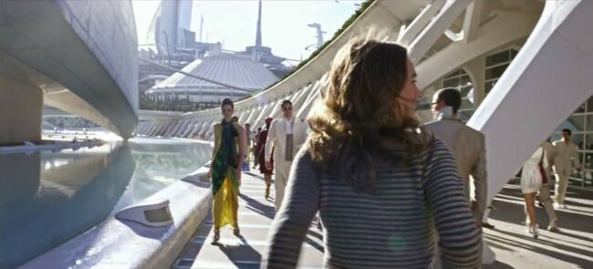 Escena de la película 'Tomorrowland', rodada en la Ciudad de las Artes y las Ciencias, como se puede apreciar en la imagen / Cadena SER