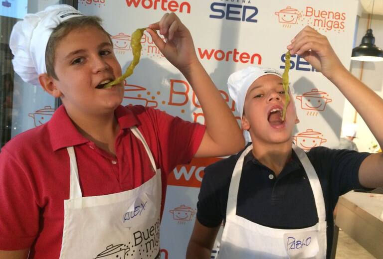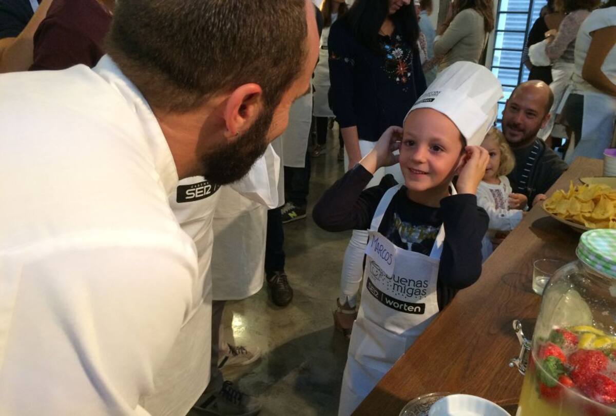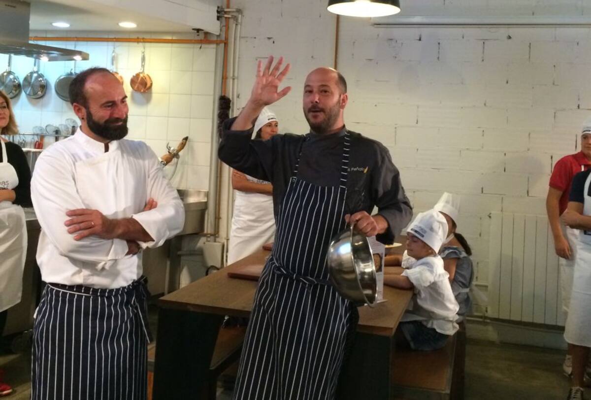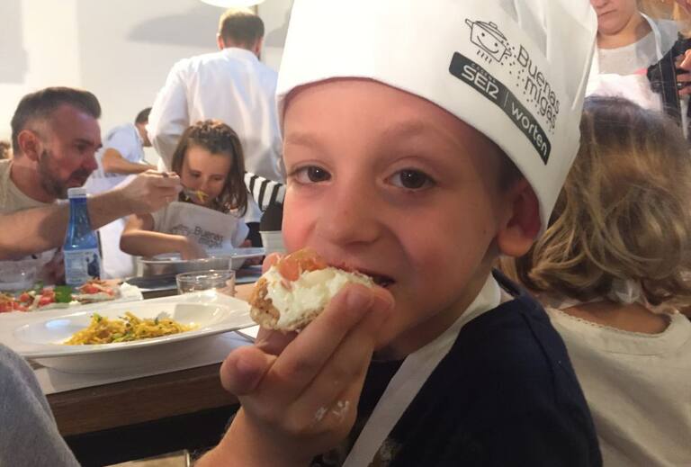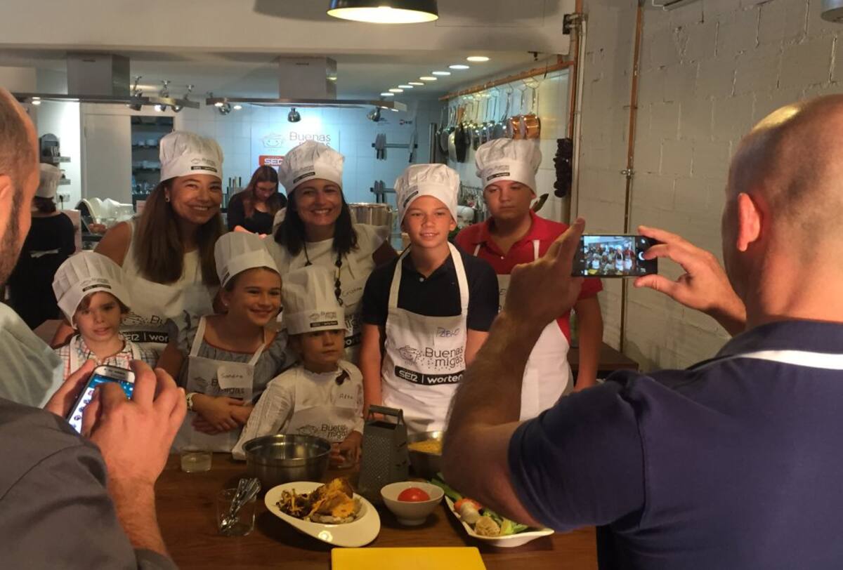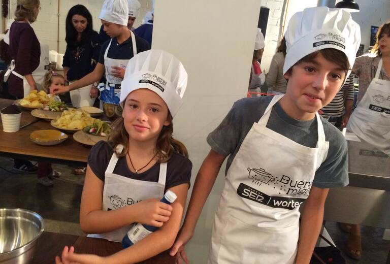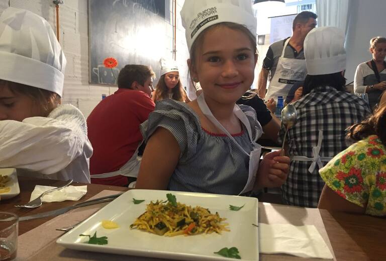 Chefs y mini chefs disfrutando juntos