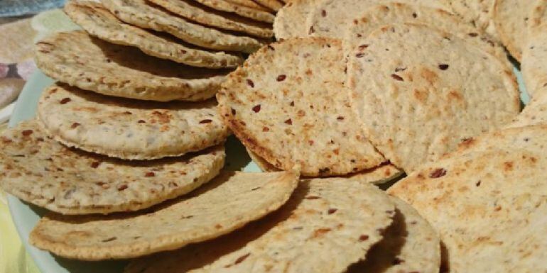 Galletas de semillas, con queso tronchón, jamón y dulce de tomate valenciano