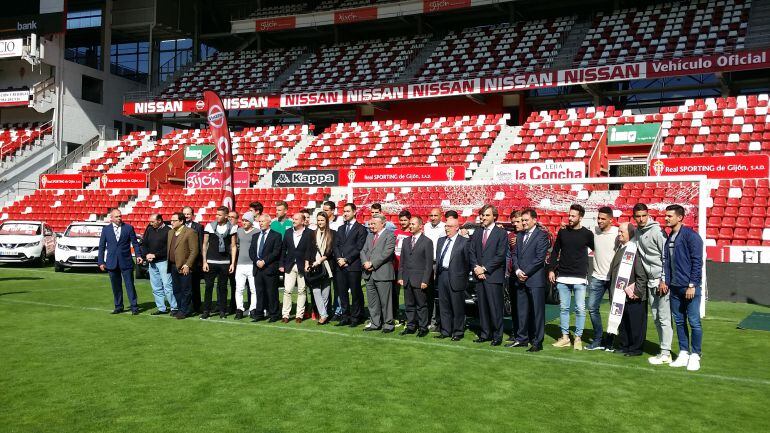 El Sporting va sobre ruedas. Concretamente, sobre las cuatro ruedas de un Nissan Qashqai. La plantilla y el cuerpo técnico rojiblanco recibieron este miércoles en El Molinón los coches de los que podrán disfrutar durante toda la temporada para su uso tanto profesional como personal. Por noveno año consecutivo, CYASA entregó los vehículos (en esta ocasión personalizados) durante un acto en El Molinón que el presidente del Sporting, Antonio Veiga, definió como "la fiesta del motor rojijblanco".