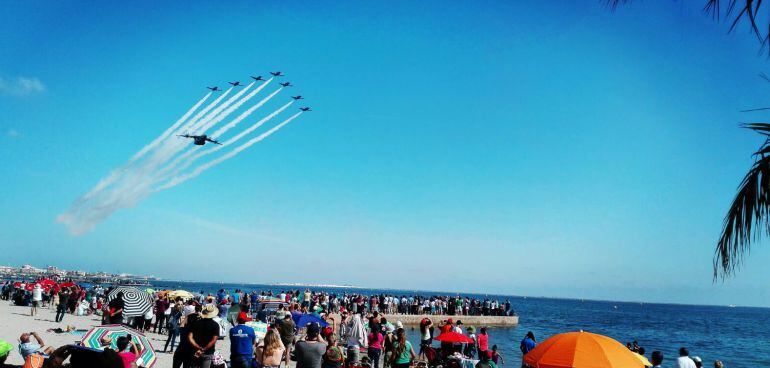 Y lo ha hecho en las Playas de Santiago de la Ribera, con una exhibición aérea junto a las Patrullas acrobáticas de Italia y Francia