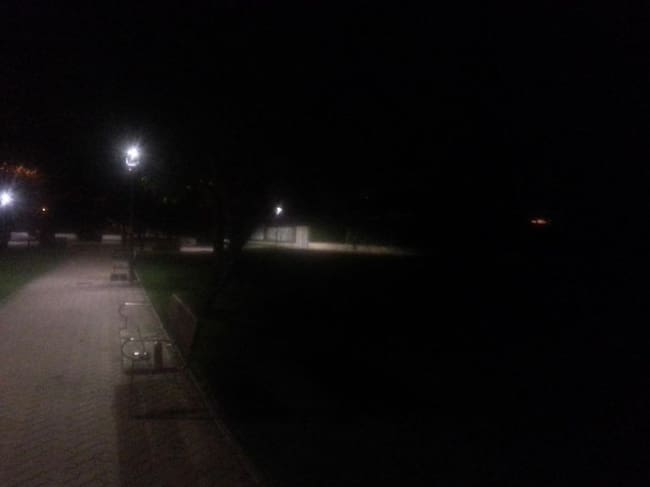 No, no es que la foto sea mala. Es que es lo que se ve en el parque junto a la avenida de Ramón Carande de la capital palentina cuando se pasa por él por la noche. O mejor dicho, lo que no se ve. Más del 70% de las luminarias existentes en el parque están fundidas.