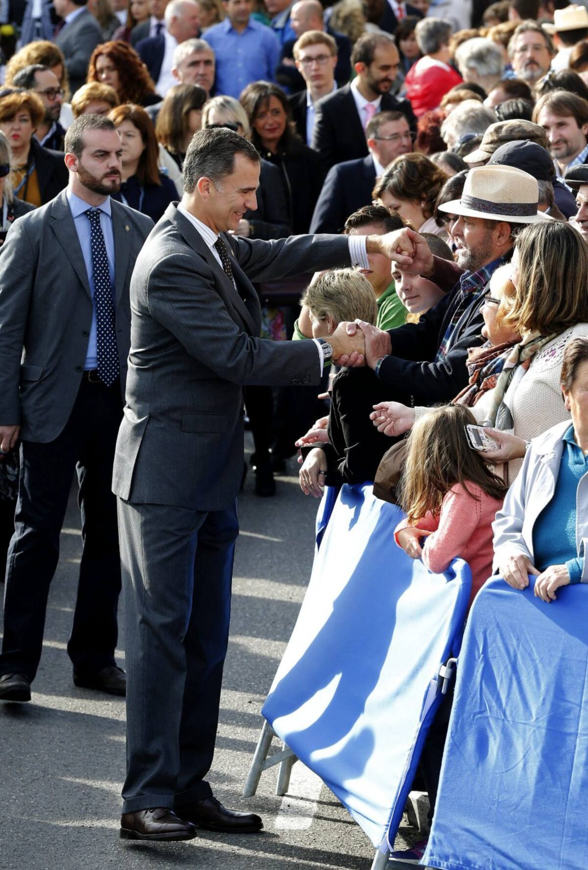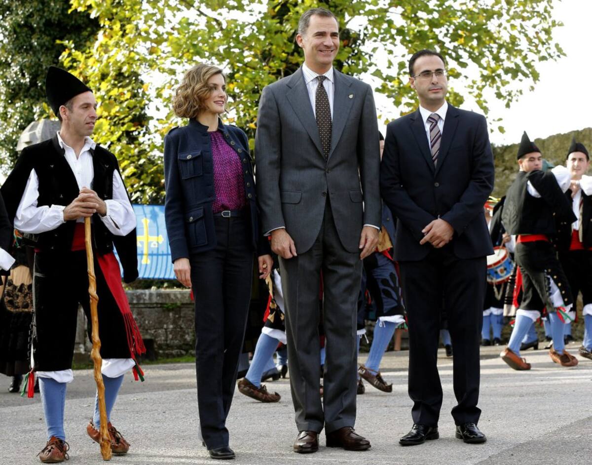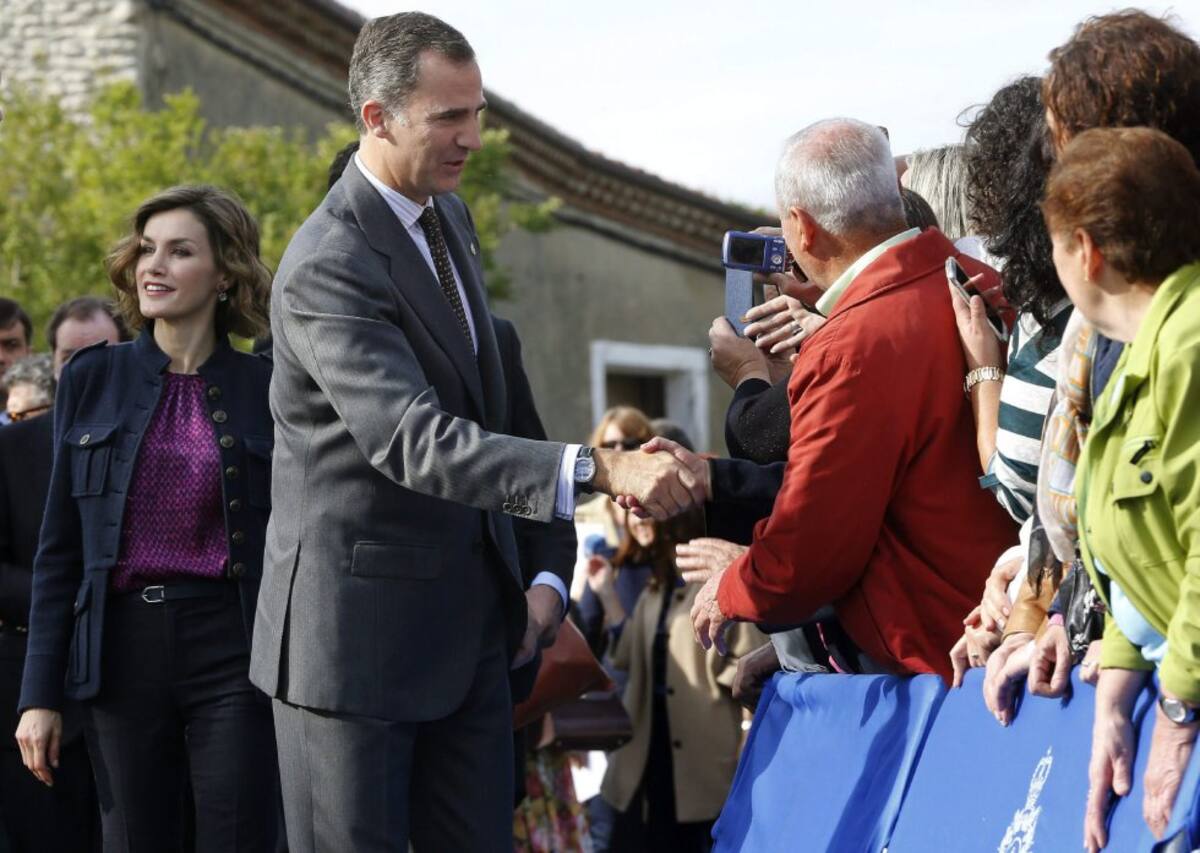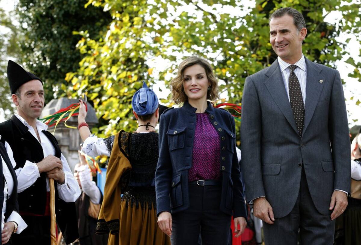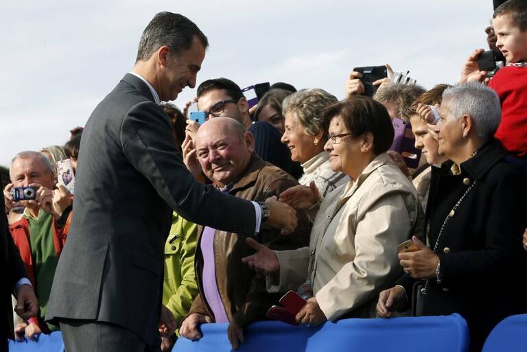 Spain's King Felipe (L) and Queen Letizia greet members of the crowd during a visit to Colombres in Asturias, northern Spain, October 24, 2015. The town received a Princess of Asturias award for Exemplary Town of Asturias. The awards are held annually since 1981 to reward scientific, technical, cultural, social and humanitarian work done by individuals, work teams and institutions. REUTERS/Vincent West