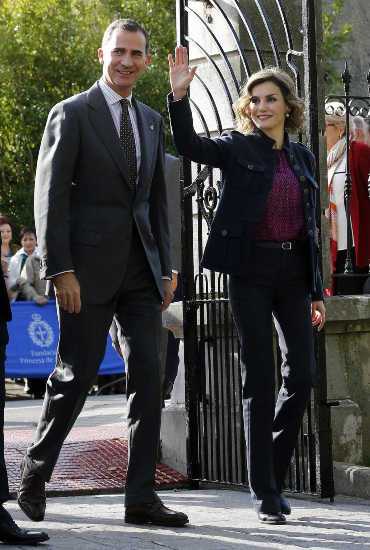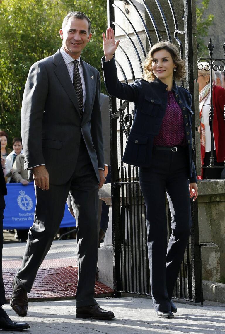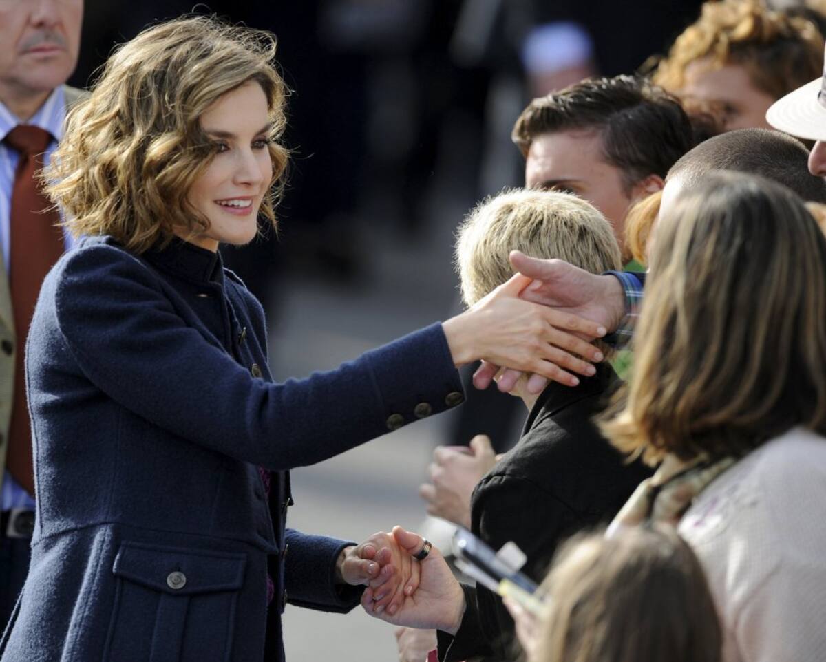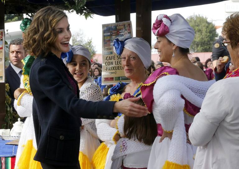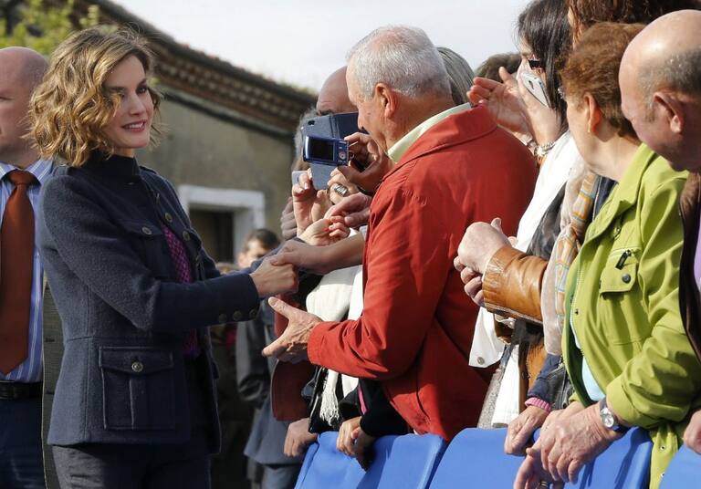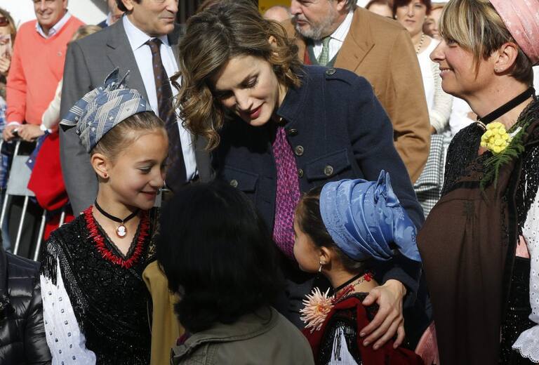Spain's Queen Letizia greets members of the crowd during a visit to Colombres in Asturias, northern Spain, October 24, 2015. The town received a Princess of Asturias award for Exemplary Town of Asturias. The awards are held annually since 1981 to reward scientific, technical, cultural, social and humanitarian work done by individuals, work teams and institutions. REUTERS/Eloy Alonso