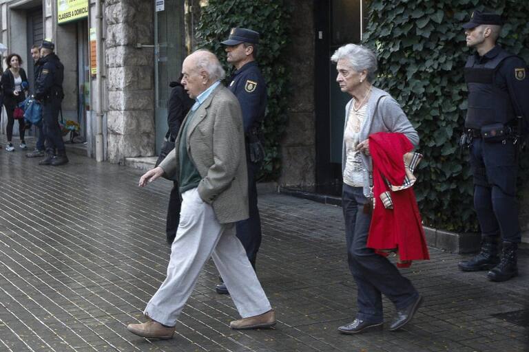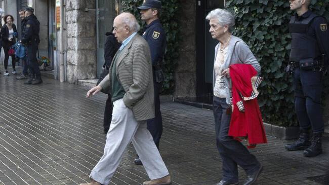 L'expresident Jordi Pujol i la seva dona, Marta Ferrusola, sortint del seu domicili