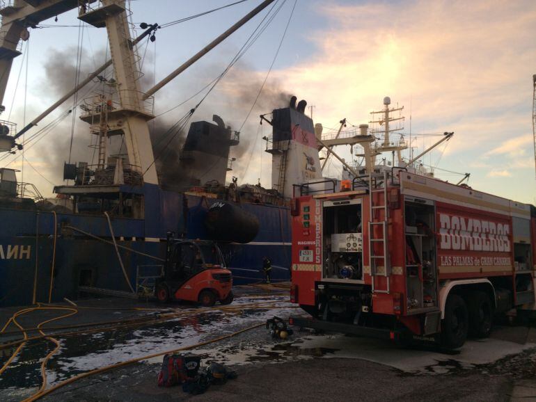 El incendio comenzó en la noche del lunes en el Muelle Grande parte Naciente del Puerto de Luz y de Las Palmas y se dio por controlado, que no extinguido, a las 6:38 de la mañana del martes. Los bomberos de Las Palmas de Gran Canaria comenzaron a trabajar sobre las diez y media de la noche en su extinción, con la colaboración de los bomberos del Consorcio de Emergencias de Gran Canaria. El fuego ha sido combatido con agua y 1.000 litros de espuma.