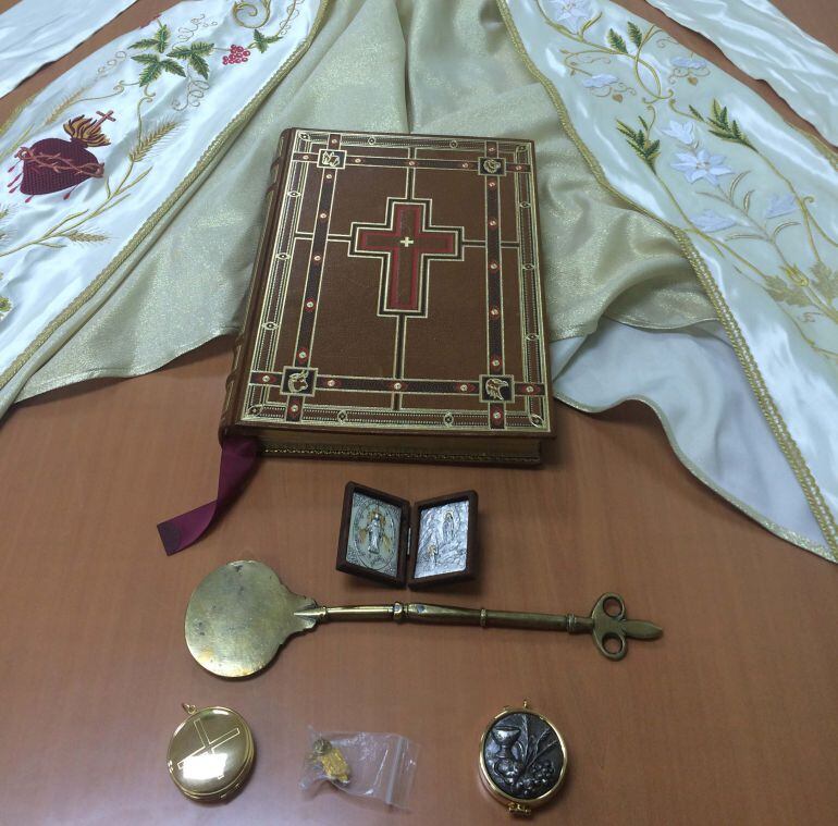 La Policía Nacional pudo saber, gracias al Arzobispado, que en la Iglesia San Miguel de Murcia habían sustraído diversos objetos que coincidían con los intervenidos. Los efectos sustraídos ya han sido entregados a sus legítimos propietarios.