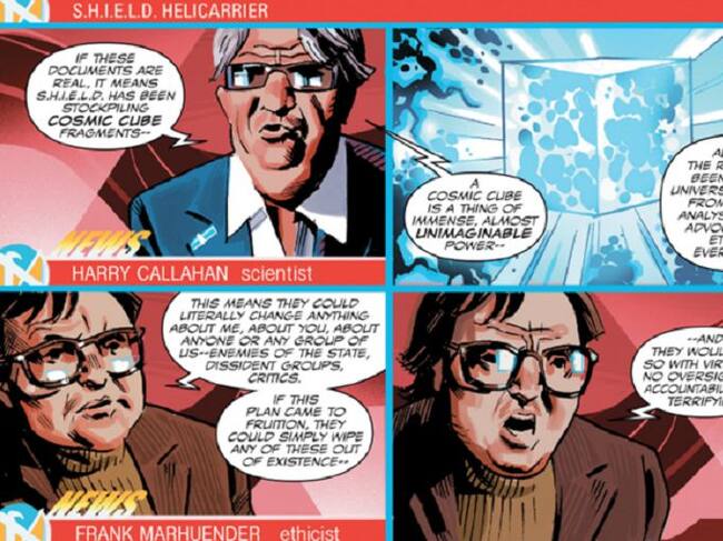 Frank Marhuender es un secundario de lujo en el nuevo cómic del Capitán América que se acaba de publicar en Estados Unidos. Para más señas hace de contertulio en un debate televisivo. Lo presentan como un "Experto en ética"