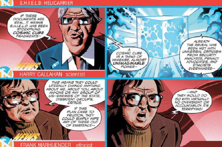 Frank Marhuender es un secundario de lujo en el nuevo cómic del Capitán América que se acaba de publicar en Estados Unidos. Para más señas hace de contertulio en un debate televisivo. Lo presentan como un "Experto en ética"