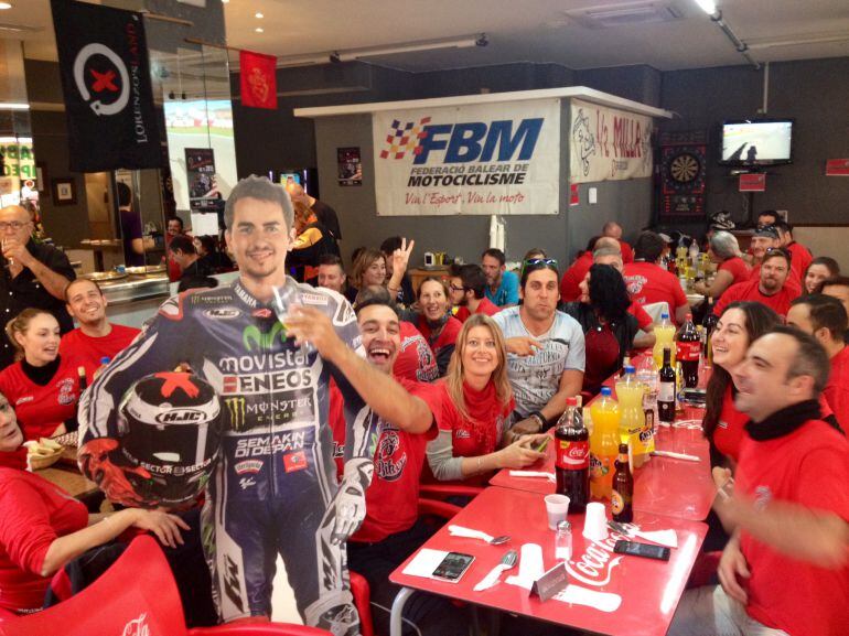 Más de un centenar de personas llenó el local y vivió un mediodía con el motor como protagonista, la pasión que les une a todos y que otra vez ha tenido a Lorenzo como protagonista, el piloto mallorquín más exitoso de la historia. Los nervios y la tensión que inundaba el ambiente durante la carrera dio paso a la celebración posterior por el título del mallorquín con cánticos dentro del local y el sonido de las motos y el olor a rueda quemada fuera.