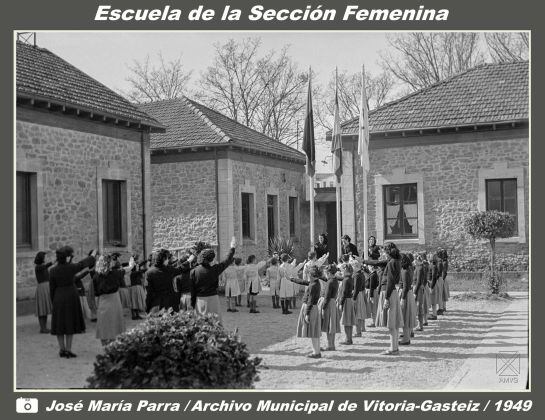 En la foto de José María Parra que se muestra a continuación, vemos a las alumnas colocadas en formación, con el brazo derecho en alto.