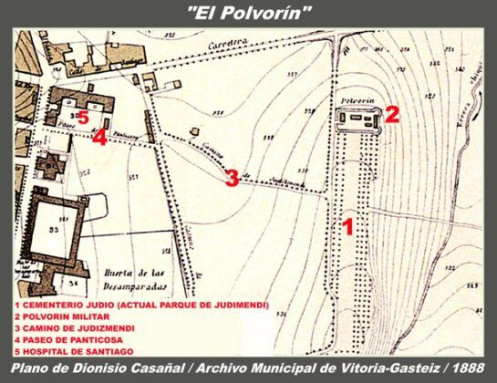 También es conocido el lugar como Polvorín Viejo, ya que donde ahora existe un colegio de enseñanza junto al parque de Judimendi, hubo unos pabellones en los que se almacenó armamento y explosivos, desde 1853 hasta 1901.