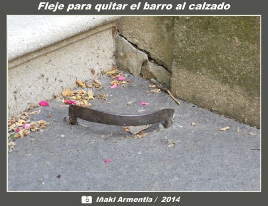 En la entrada a las viviendas existía un fleje de metal, sobre el que se pasaba el calzado para eliminar el barro de las suelas. Alguno queda aun en la zona.”