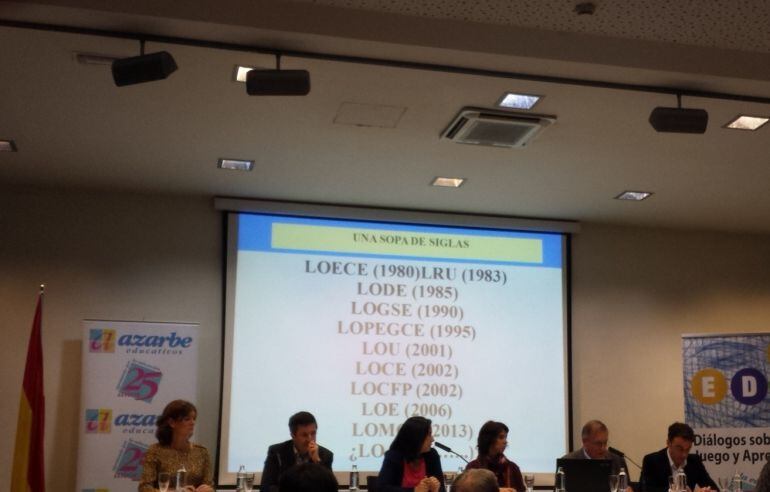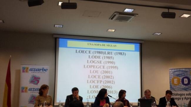 Abrió las intervenciones Antonio Viñao, Catedrático de Teoría e Historia de la Educación en la Universidad de Murcia que habló de SOPA DE SIGLAS: loce, lode, lopegce, lou, loce, locfp...que muestran que cada cambio de gobierno ha supuesto una reforma educativa o proyecto de reforma, algunas aprobadas y no aplicadas, otras olvidadas en algún cajón.