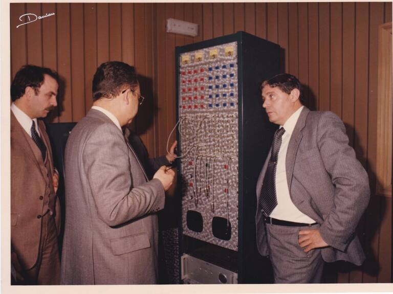 • Comprobando los dispositivos técnicos junta el alcalde ,el entonces director regional Ismael Mascarell.